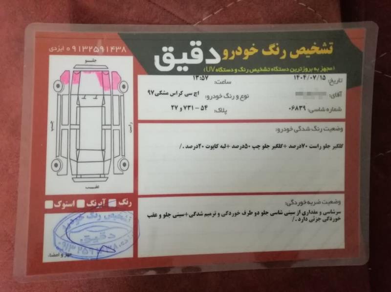 وضعیت بدنه: رنگ دار قسمت رنگ دار: 'گلگیر جلو