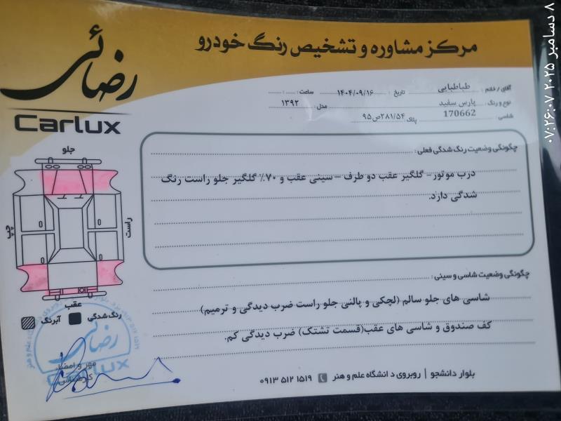 توضیحات بیشتر: سلام و احترام ماشین پژو پارس مدل 1392 دوگانه سوز فابریک حدود 261 هزار تا کار موتور و فنی کاملاً سالم سیلندر سال گذشته تعویض شده و موتور کاملاً تعمیر شده قیمت 580م ت