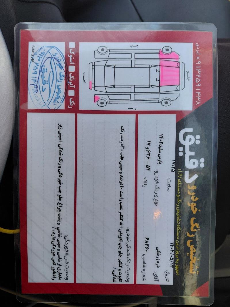 وضعیت بدنه: رنگ دار قسمت رنگ دار: کاپوت و گلگیر